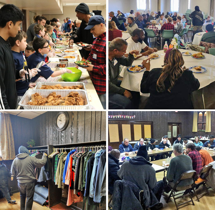 We gather in Chicago at Tim's House on Wednesdays (2 PM. - 6:30 PM), Fridays (8:45 AM - 1 PM.), and occasional Mondays for hot meals, Bible Studies, clothing, and more. We also gather in Palatine every 4 weeks on Sundays from 12 - 3 p.m. for a huge potluck luncheon, Worship Service, and Clothing Table. Thanks to your generous donations, we are able to provide 600+ meals each month as well as 200+ bags of clothing/blankets, bus cards, food gift cards, housing assistance, and financial assistance. Everyone especially looks forward to our time together when we open the Bible, pray, and share, because it is a wonderful family fellowship where we experience the love and presence of God together.